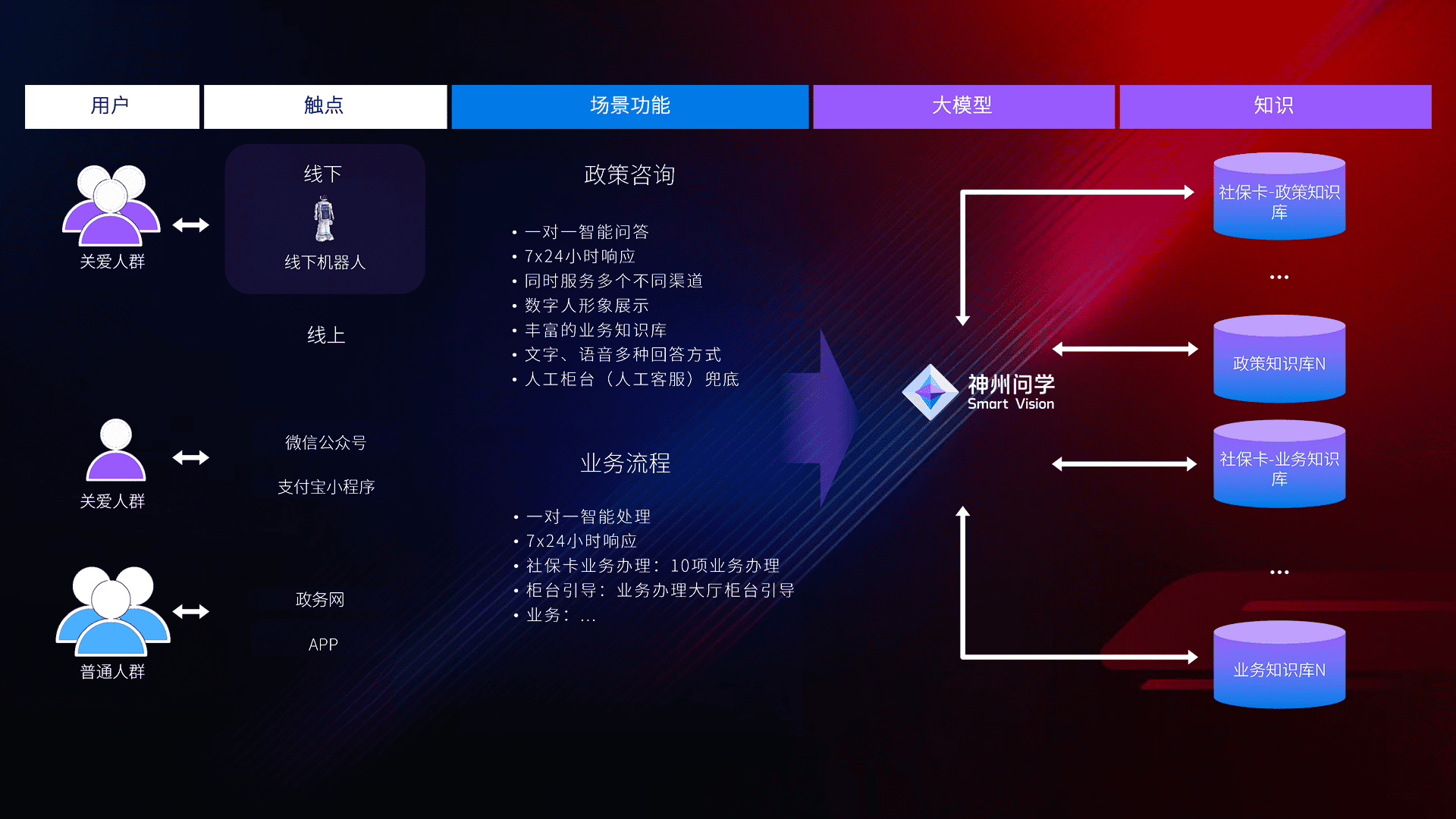 • 线上线下全覆盖:线上提供微信公众号、、、、支付宝小程序、、、、政务网、、app多种渠道,,,,与线下机器人形成完整服务体系。。